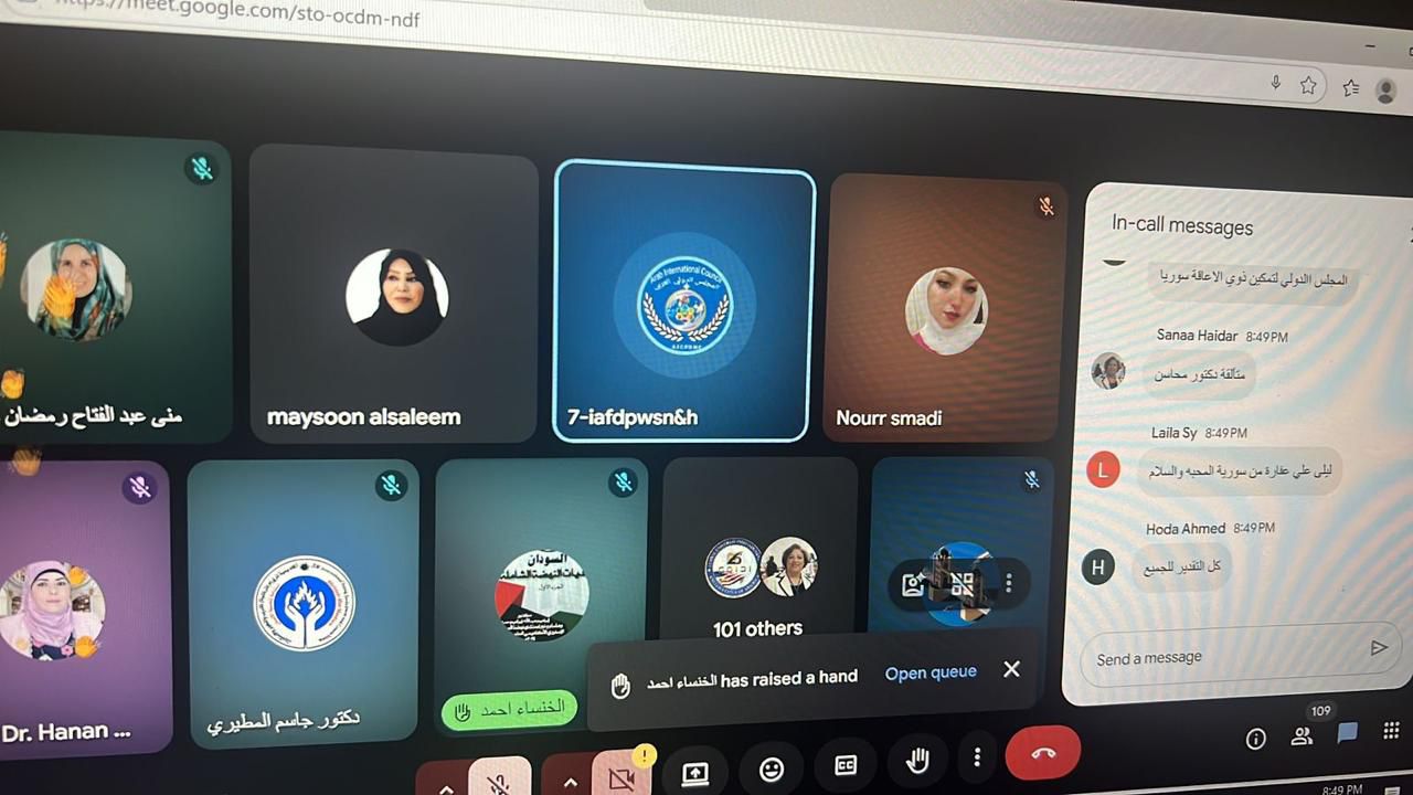 الأستاذة محاسن مدللة (سوريا)، الدكتور عبد القادر سعيد (ألمانيا)، البروفيسور الدكتورة حنان عبيد (المملكة المتحدة)، الدكتورة سولافة إبراهيم (السودان)، والأستاذ نعيم غنيم (الأردن).
