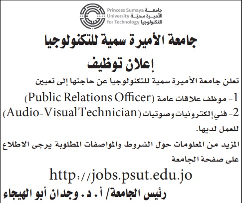 وظائف شاغرة لدى جامعة الاميرة سمية للتكنولوجيا