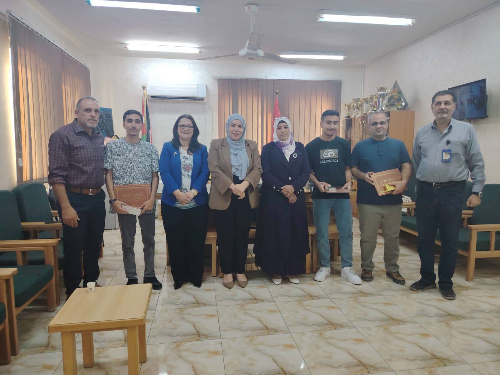 عقب ذلك، قامت الشطناوي بتوزيع الشهادات التقديرية على الطالبين علاء جودة وعلي المصاروة، إضافة إلى المعلم المشرف أسامة ملكاوي.