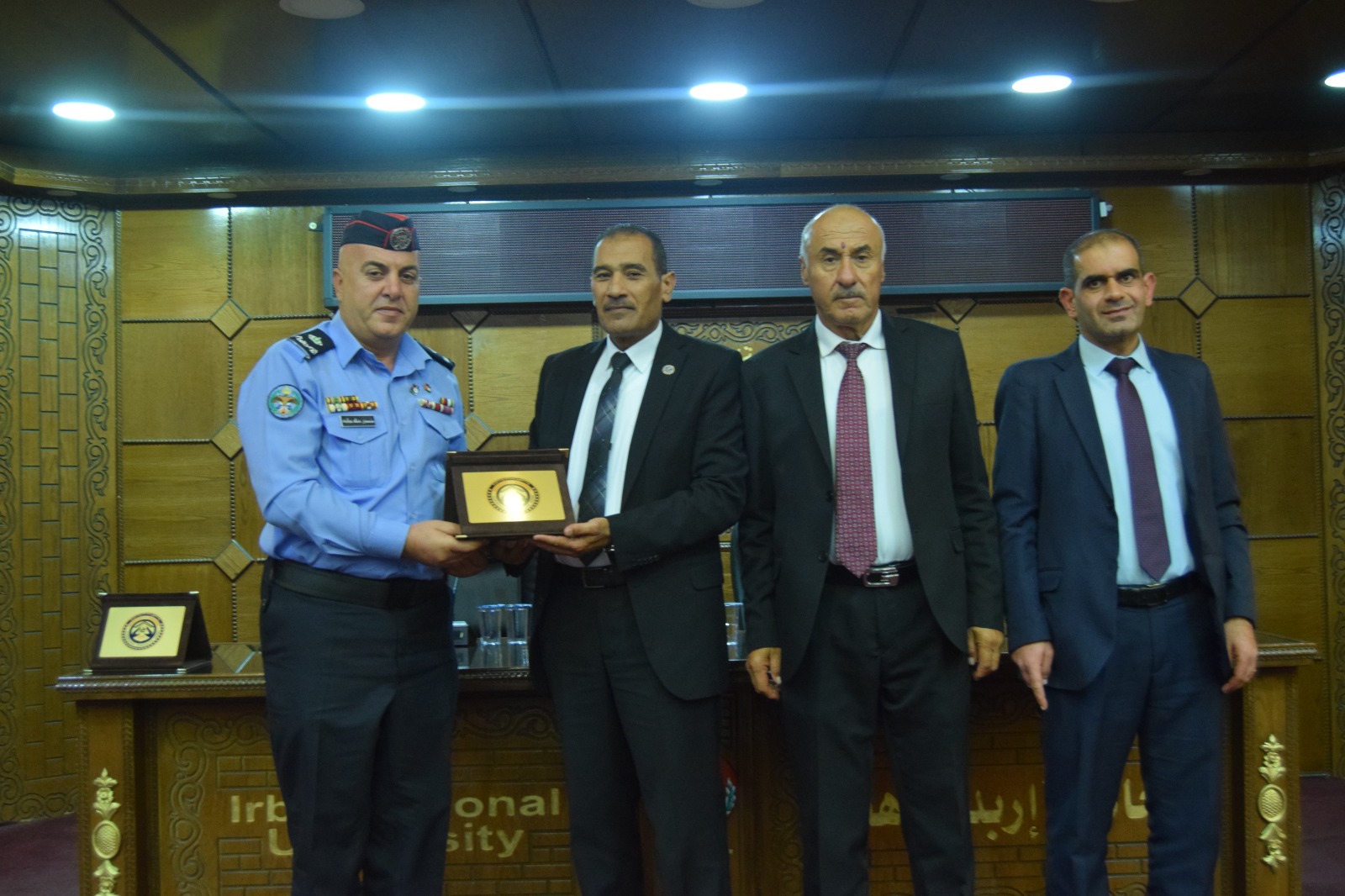 وفي ختام الندوة، قدّم الأستاذ الدكتور غسان الشمّري درع الجامعة إلى الرائد منذر العبابنة، تقديرًا لدور مديرية الأمن العام ومركز السلم المجتمعي في جهودهم المتواصلة لنشر الوعي وتعزيز الشراكة مع مؤسسات التعليم العالي.