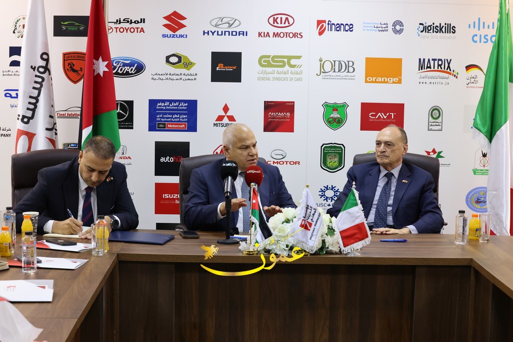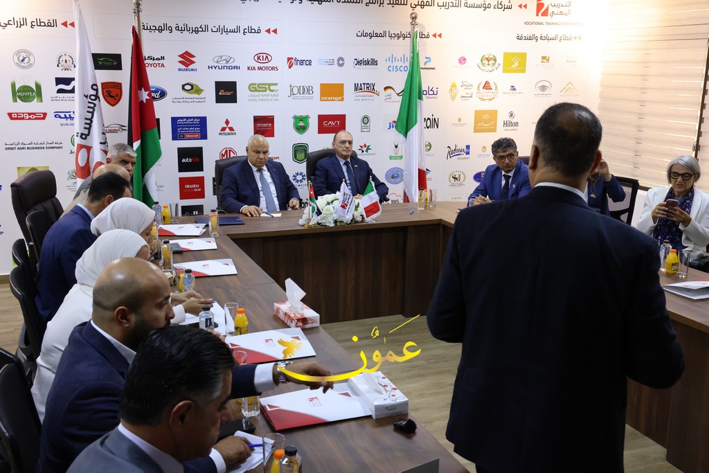 وجرى توقيع الاتفاقية برعاية رئيس مجلس إدارة مؤسسة التدريب المهني ووزير العمل الدكتور خالد البكار، وبحضور مدير عام المؤسسة الدكتور أحمد مفلح الغرايبة، ومدير عام مركز CESF المهندس عدنان السواعير وسعادة السفير الإيطالي في عمّان Luciano Pezzotti لوتشيانو بيتزوتّي .