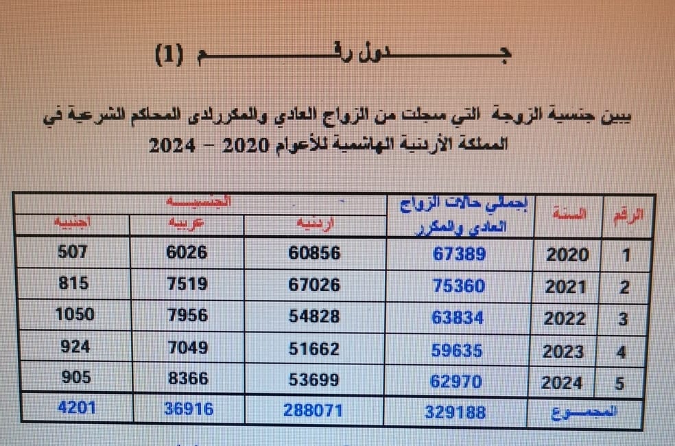 الخزاعي: الأردنيون يتزوجون من 33 جنسية عربية واجنبية