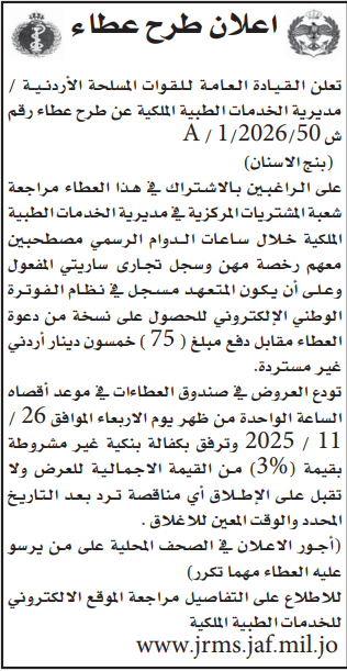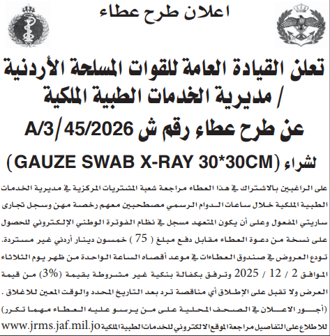 عطاءات صادرة عن الخدمات الطبية الملكية