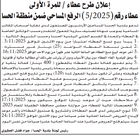 عطاء الرفع المساحي ضمن منطقة الحسا