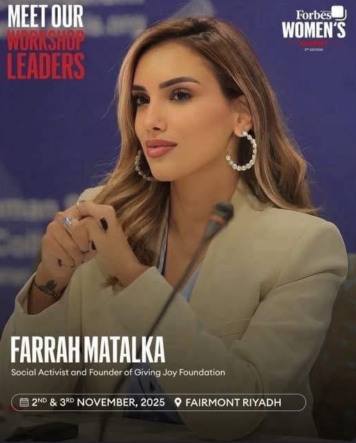 عمون - تشارك الناشطة الاجتماعية فرح مطالقة من مؤسسة وهب الفرح، في قمة فوربس للمرأة، والتي انطلقت أمس برئاسة الأميرة نورة بنت محمد آل سعود، وتستمر لمدة يومين. |