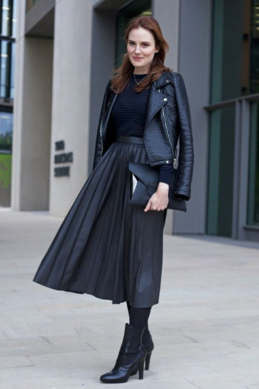 1. الجاكيت الجلد مع الجيبة البليسيه