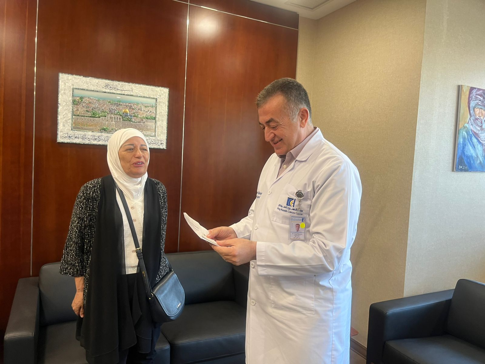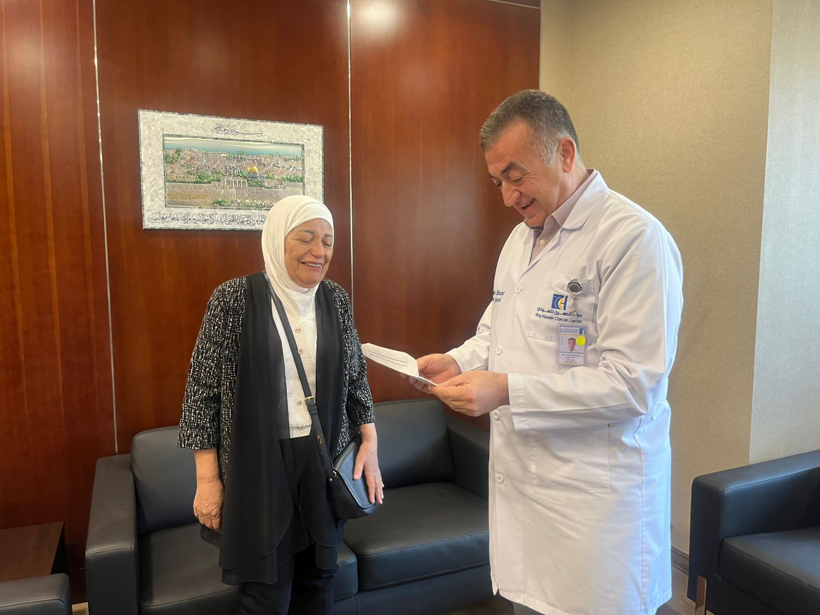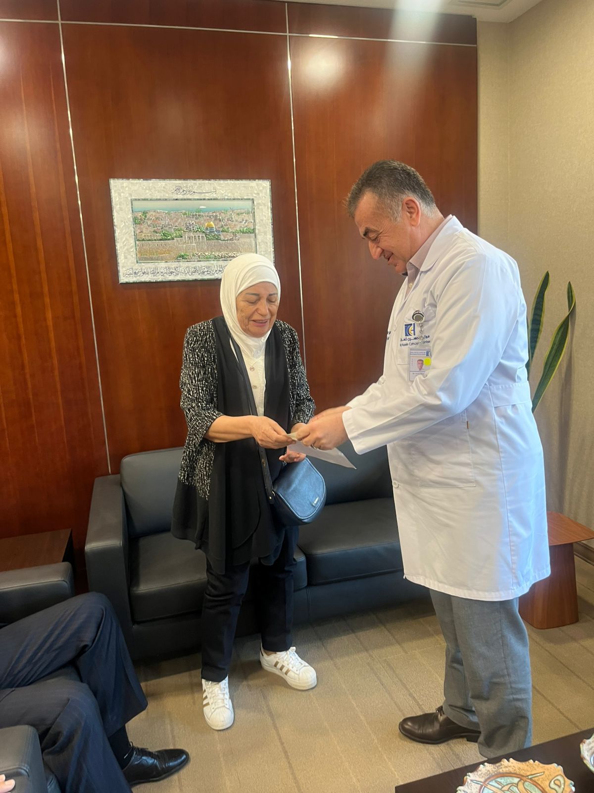 عمون - التقت السيدة مريم ضافي الجمعاني، اليوم الثلاثاء، بالرئيس التنفيذي ومدير عام مركز الحسين للسرطان الدكتور عاصم منصور، تأكيدًا على رسالة معرضها الفني الأول الهادفة إلى الإسهام في دعم هذا الصرح الوطني الانساني وجهود مؤسسة الحسين للسرطان في إنقاذ الأطفال ومكافحي السرطان.