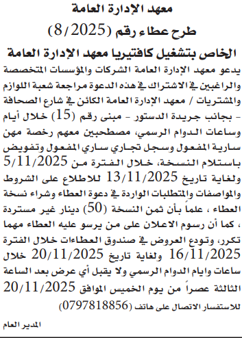 عطاء تشغيل كافتيريا لمعهد الادارة العامة