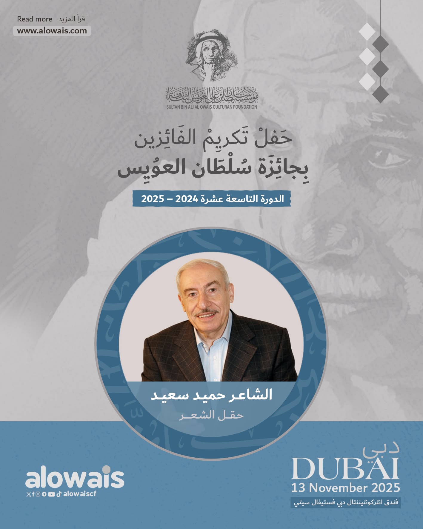 الشاعر حميد سعيد يُكرم بجائزة سُلطان العويس