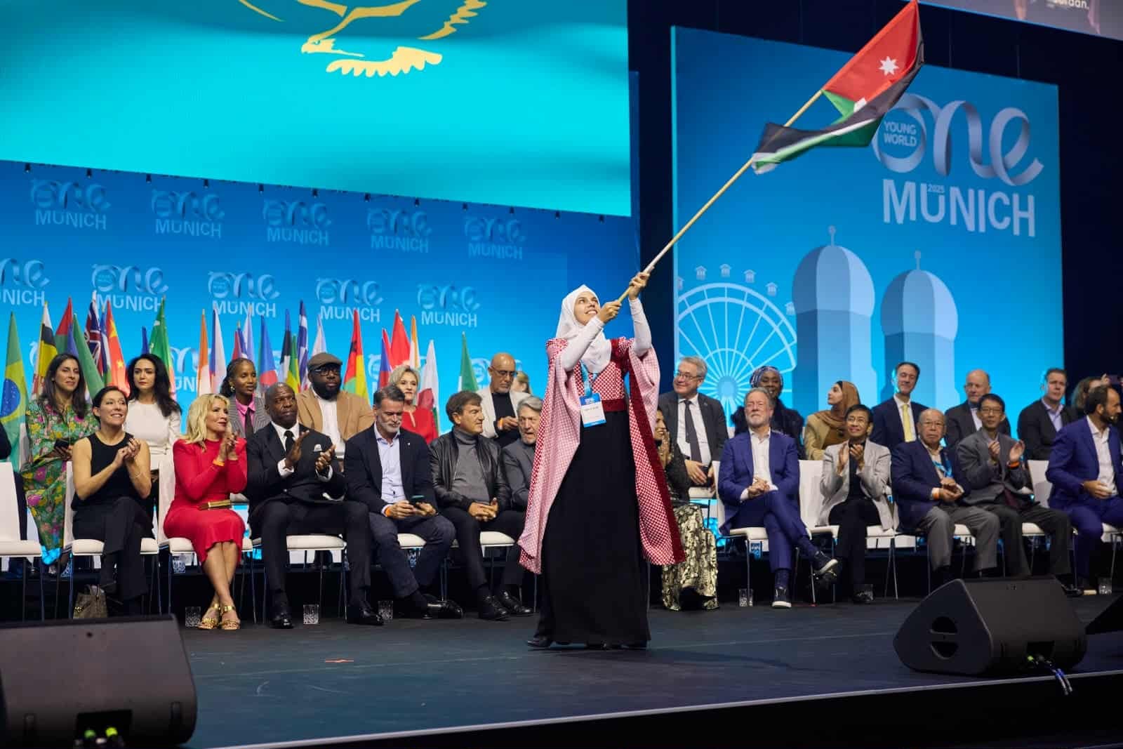عمون - بحضور جلالة الملكة رانيا العبدالله التي ألقت كلمة مؤثرة في افتتاح قمة "عالم شاب واحد" One Young World 2025 بمدينة ميونخ الألمانية، شاركت الريادية الأردنية آلاء ثلجي السعودي خريجة الجامعة الهاشمية من كلية الأمير الحسن بن طلال للموارد الطبيعية والبيئة/تخصص إدارة المياه والبيئة، دفعة 2017، في فعاليات القمة ممثلةً عن الأردن، في حدث عالمي جمع أكثر من خمسة آلاف شاب وشابة من 190 دولة.