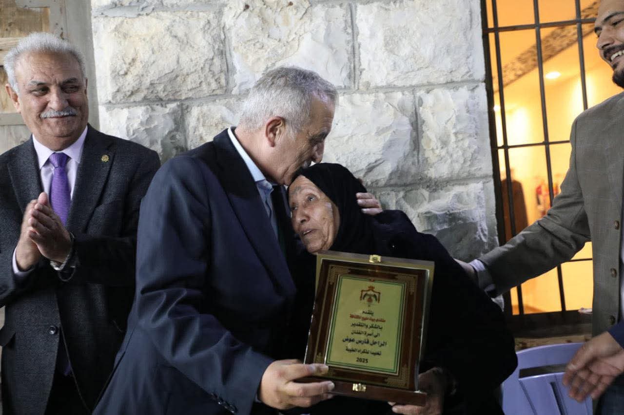 توقفت كثيرا عند هذه الصورة ، كم فيها من العاطفة والإنسانية والوفاء ، وأنا أرى والدة الفنان الراحل فارس عوض وهي تتسلّم درعا تكريميا من معالي وزير الثقافة الأستاذ مصطفى الرواشدة قبل أيام في قريته " مليح " ، والتي كرّمت إبنها المبدع بعد سنوات من رحيله..