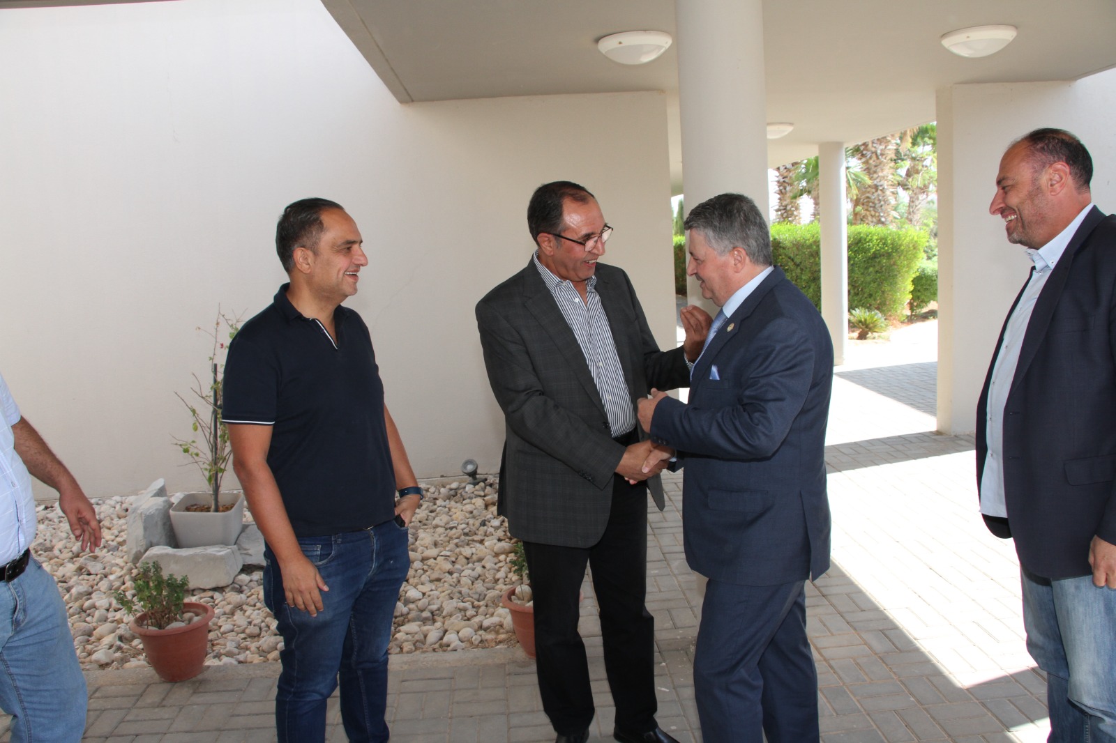 عمون - زار وفد يمثل جمعية عَون الثقافية الوطنية برئاسة اسعد ابراهيم ناجي العزام رئيس الهيئة الإدارية (شركة العطارات للطاقةAPCO (ATTARAT POWER COMPANY) في منطقة أم الغدران).للإطلاع على عمل مشروع العطارات عن كثب،حيث كان المهندس محمد المعايطه عضو مجلس إدارة الشركة على رأس مستقبلي رئيس وأعضاء الوفد الزائر لحظة وصولهم مقر الشركة،كما كان بالإستقبال كل من: