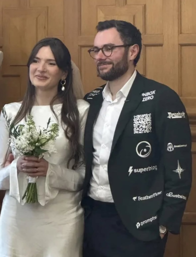 وفي 25 أكتوبر/تشرين الأول، ظهر العريس في حفل زفافه مرتدياً بدلة أنيقة تحمل شعارات 26 شركة ناشئة، وشارك صورة عبر الإنترنت معبراً عن امتنانه قائلاً: شكراً لكل الشركات التي جعلت زفافنا ممكناً.. لقد كان يوماً لا يُنسى!.