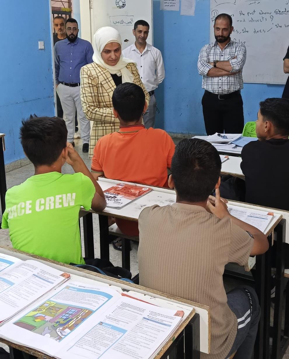 كما تفقدت مرافق المدرسة واطلعت على بيئة التعلم، والتقت مدير المدرسة الأستاذ عصام شكور والكادر الإداري والتدريسي، مؤكدة حرص مديرية التربية والتعليم على دعم الجهود المبذولة لرفع مستوى الأداء وتحسين نواتج التعلم.