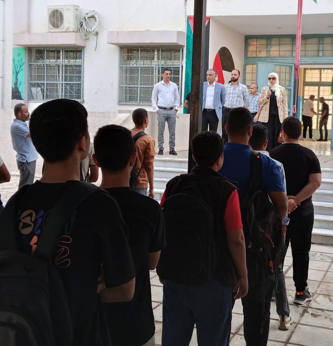 فريحات تشارك طلبة مدرسة المنشية الثانوية للبنين الطابور الصباحي