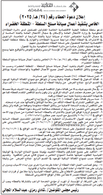 عطاء صادر عن سلطة منطقة العقبة