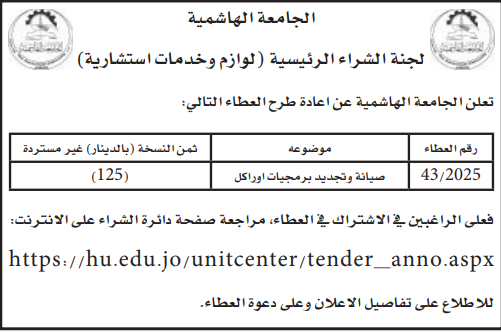 عطاء صادر عن الجامعة الهاشمية