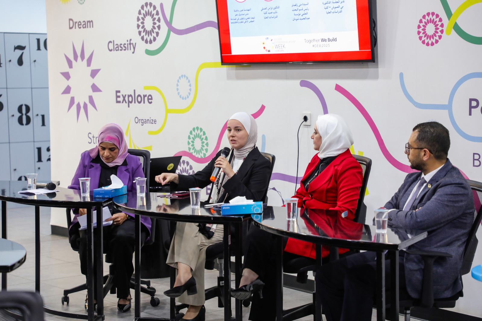 واستُهلت فعاليات الجلسات الحوارية بعقد الجلسة الأولى التي أدارتها الدكتورة مي العموش بعنوان: "جسور ريادية وفرص بحثية مستقبلية لتحقيق صناعة معرفة وطنية"، والتي شارك بها المهندسة عبير رماضنة، مدير صندوق دعم البحث العلمي والتطوير في الصناعة بالمجلس الأعلى للعلوم والتكنولوجيا، موضحة أهمية دعم المشاريع الريادية في القطاعات الصناعية، فيما تحدثت السيدة منى زقصاو، رئيس قسم البحث العلمي في مؤسسة عبد الحميد شومان، عن دور المؤسسة في تمويل ودعم الأبحاث المبتكرة التي تعزز التنمية المستدامة.