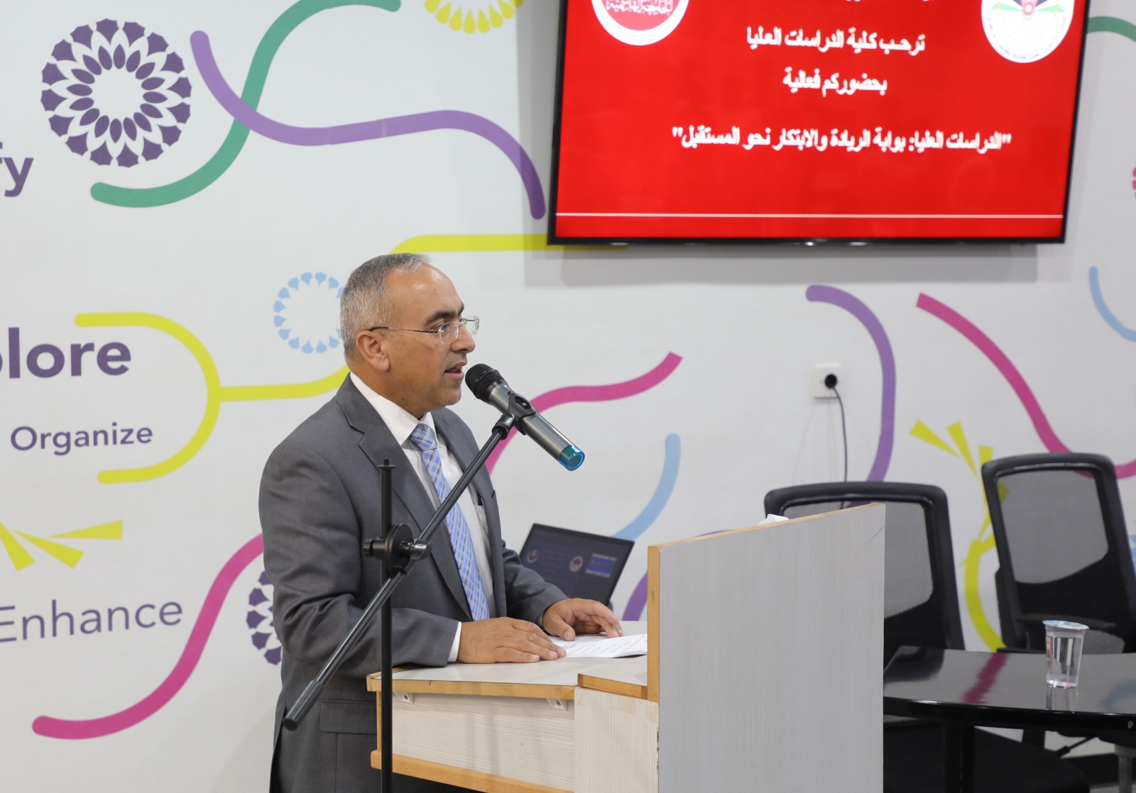 من جانبه أكد الدكتور صادق شديفات على أهمية تعزيز البحث العلمي المبتكر وربط الدراسات العليا باحتياجات المجتمع وسوق العمل، مشيراً الى أن الكلية تسعى دائماً لتقديم برامج أكاديمية متقدمة تُنمّي قدرات الطلبة العلمية والبحثية، وتشجعهم على الابتكار والإبداع، مؤكداً على أن البحث العلمي النوعي هو أساس الارتقاء بالجامعة ومواكبة التطورات العالمية في مختلف التخصصات.