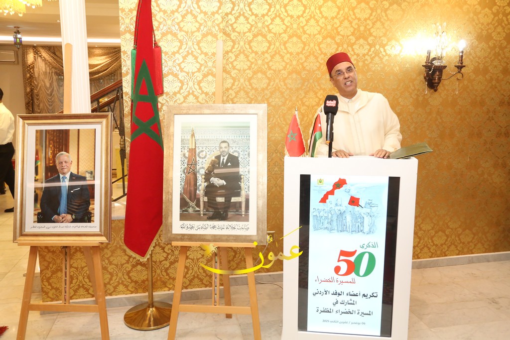 عمون - بمناسبة احتفال المملكة المغربية "بالذكرى الخمسين للمسيرة الخضراء المظفرة"، أقام السيد فؤاد أخريف السفير المغربي في الأردن، حفل تكريم اليوم الخميس 06 تشرين الثاني 2025 على شرف بعض الشخصيات الاردنية المشاركة في "المسيرة الخضراء" . |
