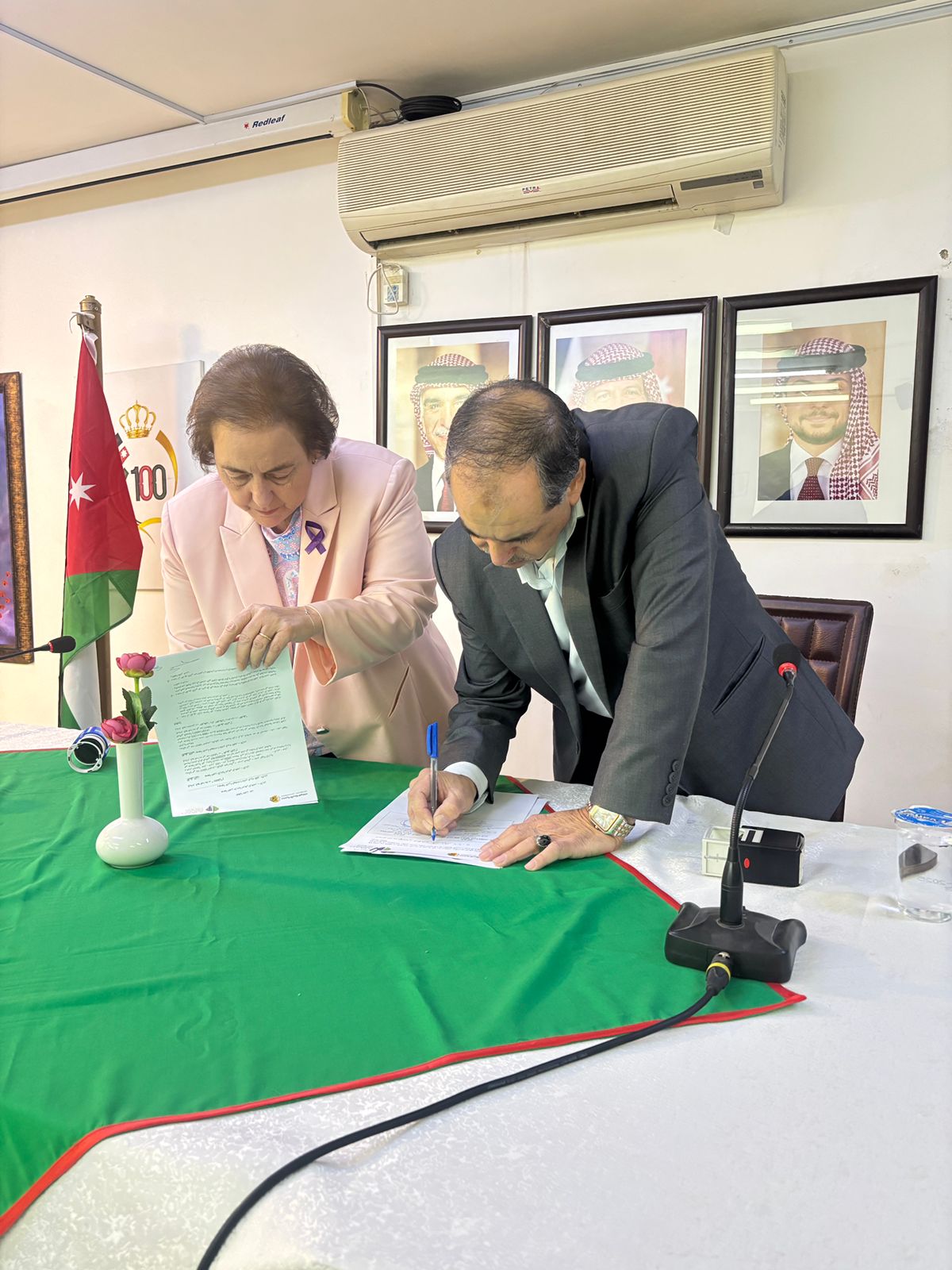 وقّعت الاتفاقية عن جمعية العون الدكتورة سوسن المجالي، عضو الهيئة الإدارية والمفوّضة بالتوقيع، وعن جمعية الأسرة البيضاء اللواء الركن المتقاعد عبدالله حسنات، نائب رئيس الهيئة الإدارية المؤقتة.