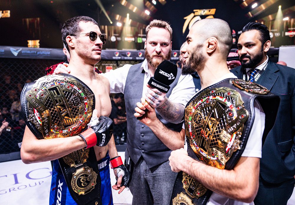 وفي نزال تاريخي على اللقب العالمي الأول في وزن الذبابة، تغلب النجم العالمي البريطاني محمد موكاييف الملقب بـ"المعاقب "، على المقاتل الإيرلندي جيرارد بيرنز الملقب بـ "الوحش"، ليحافظ على سجله المثالي بـ15 انتصاراً، من بينها سبعة بالاستسلام واثنان بالضربة القاضية. وبعد تألقه في بطولتي العالم للهواة ( IMMAF ) عامي 2019 و2020، واصل مسيرته الاحترافية المميزة في BRAVE CF بتحقيقه خمسة انتصارات في ست مواجهات.