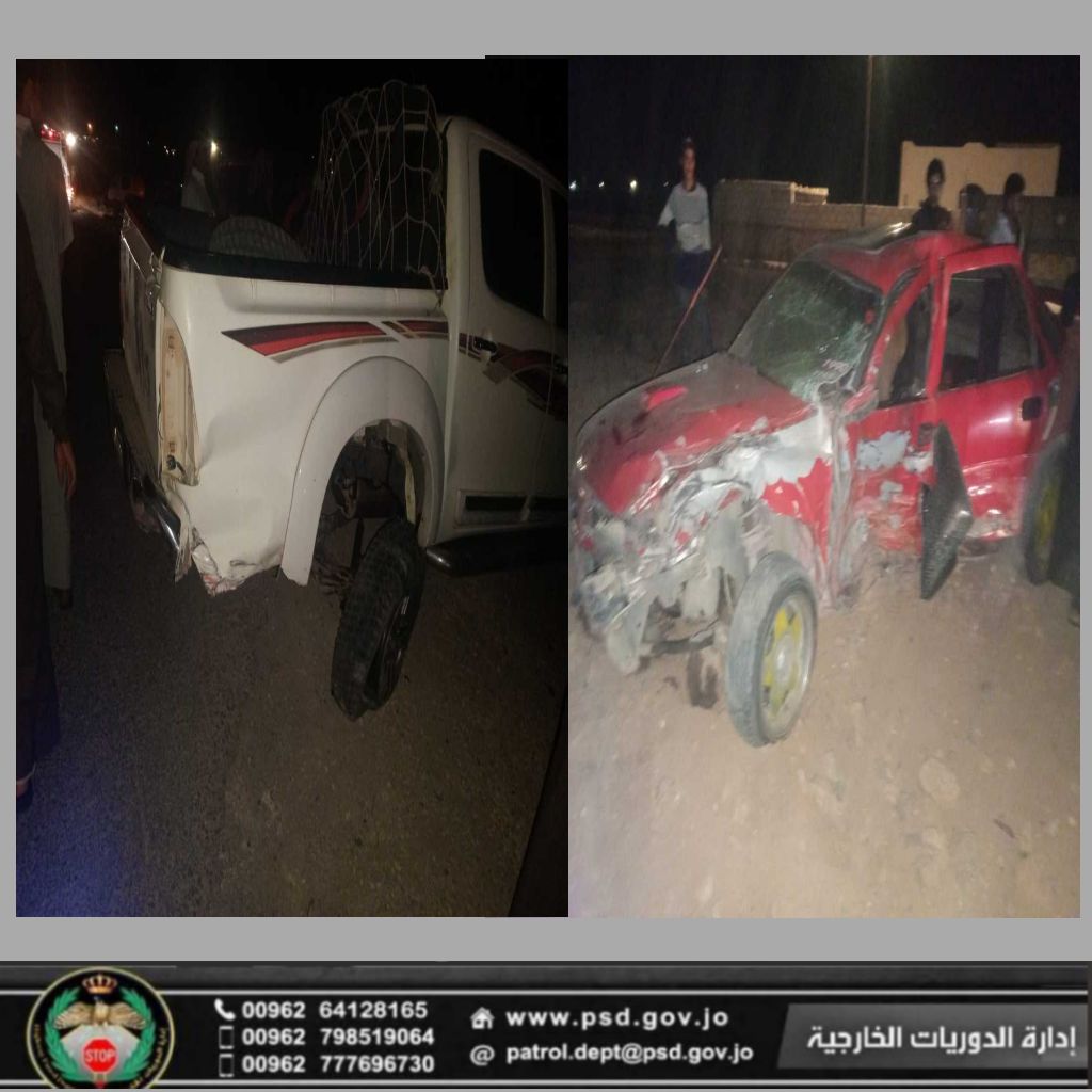 عمون - تعاملت الدوريات الخارجية مساء اليوم السبت مع حادث تصادم بين مركبتين ما بعد محطة البشرية بحوالي 8 كم باتجاه الرويشد، نتج عن 5 إصابات، تم اسعافهم إلى المستشفى. |