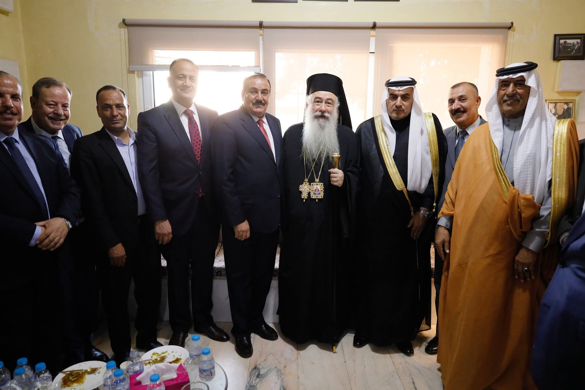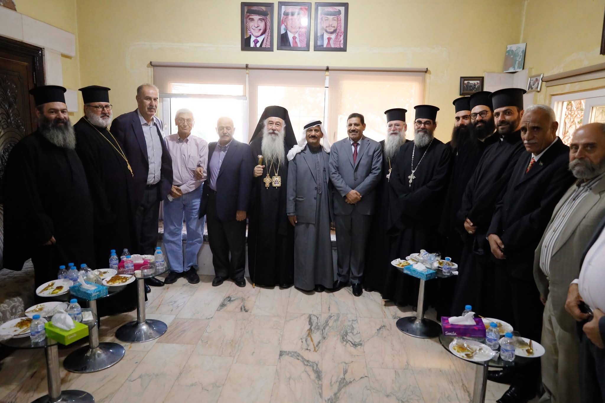 عمون - في مَضافة المَرحوم الشيخ طلب أبو عليم صباحَ اليوم السّبت، أولمَ كلٌ المهندس سليمان طلب أبوعليم والشّيخ فراس طلب أبوعليم على شَرف سِيادة المُطران خريستوفوروس مُطران الرّوم الأرثوذكس وميشيل الصّايغ رَئيس النّادي الأرثوذكسي، وكان في الإستقبال شَخصياتٌ مُقدّرة مِن شُيوخ قبيلة بني حَسن وفي مُقدمتهم شُيوخ عَشائر ووُجهاء مُحافظة المَفرق.
