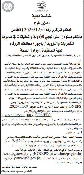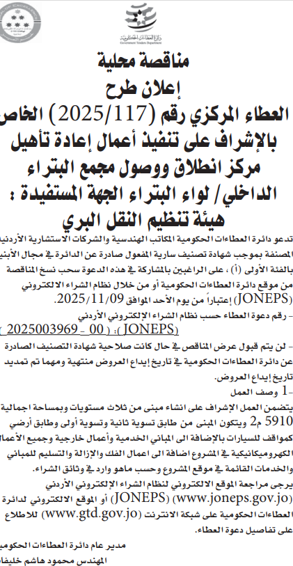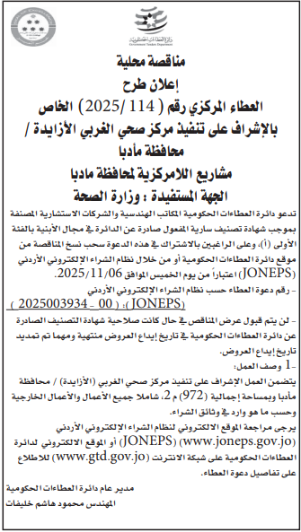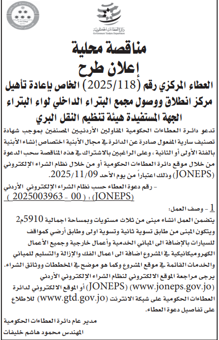 عطاءات صادرة عن دائرة العطاءات الحكومية