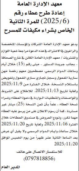 عطاء شراء مكيفات لمعهد الادارة العامة