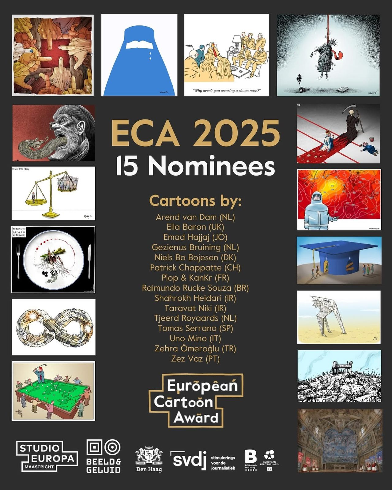 القائمة القصيرة لمرشحي جائزة الكاريكاتير الاوروبي: