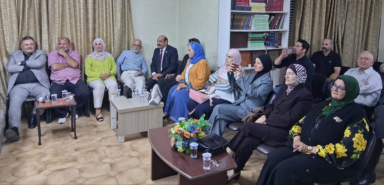 عمون - وسط حضور لافت من الأدباء والكتاب أعضاء الهيئة العامة للاتحاد وبرعاية نائب رئيس اتحاد الكتّاب والأدباء الأردنيين الأستاذ وائل عبد ربه ، وبحضور عددٍ من أعضاء الهيئة الإدارية والعامة، وأمينة صندوق الاتحاد، الاستاذة سوسن المهتدي أقيمت أمسية شعرية مميزة احتفاءً بإصدار الديوان الجديد «ينابيع الشوق» للشاعر والطبيب الدكتور فتحي علي عبد الله، وذلك في مقرّ الاتحاد بعمان، وسط حضور أدبي لافت. |