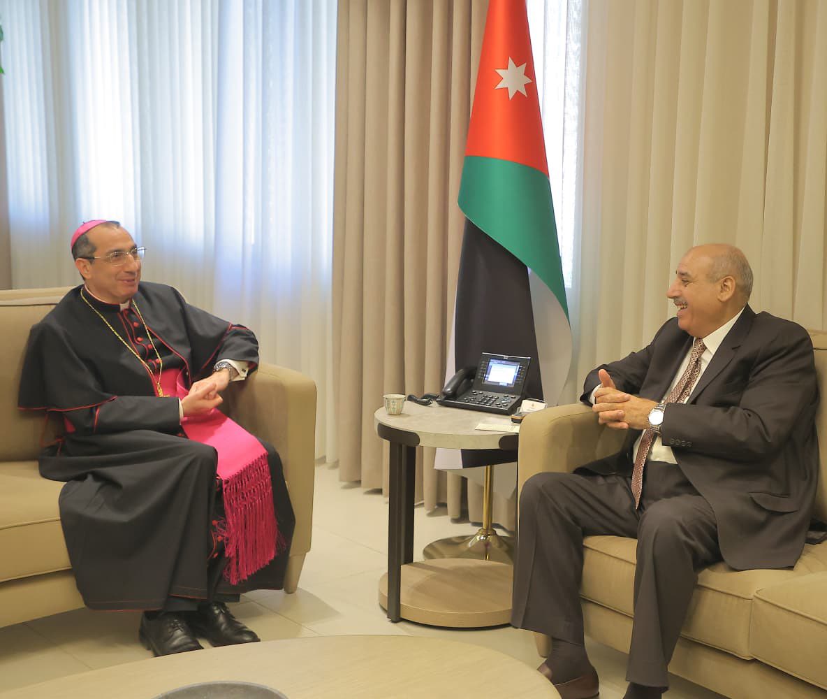 عمون - استقبل رئيس مجلس النواب مازن القاضي، اليوم الأحد، المطران إياد الطوال، والوفد المرافق من قدس الآباء الكهنة: الأب عماد علمات، والأب همام الخزوز، بحضور النائب هيثم زيادين.