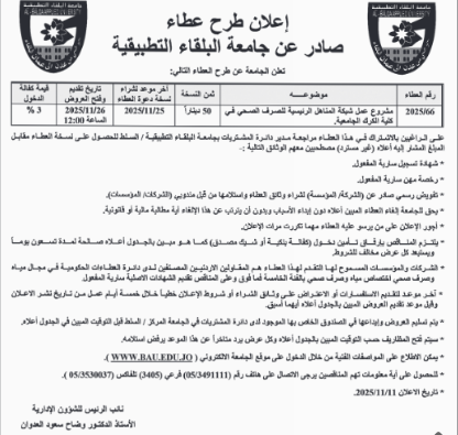 عطاء صادر عن جامعة البلقاء التطبيقية
