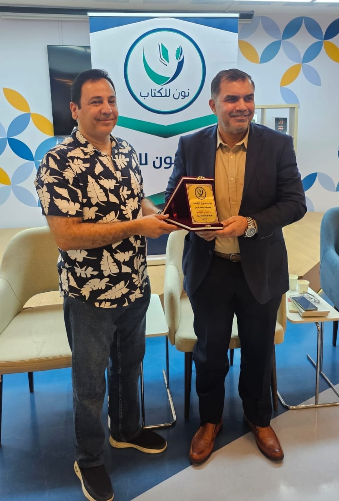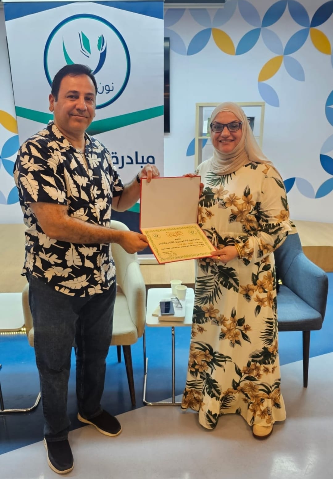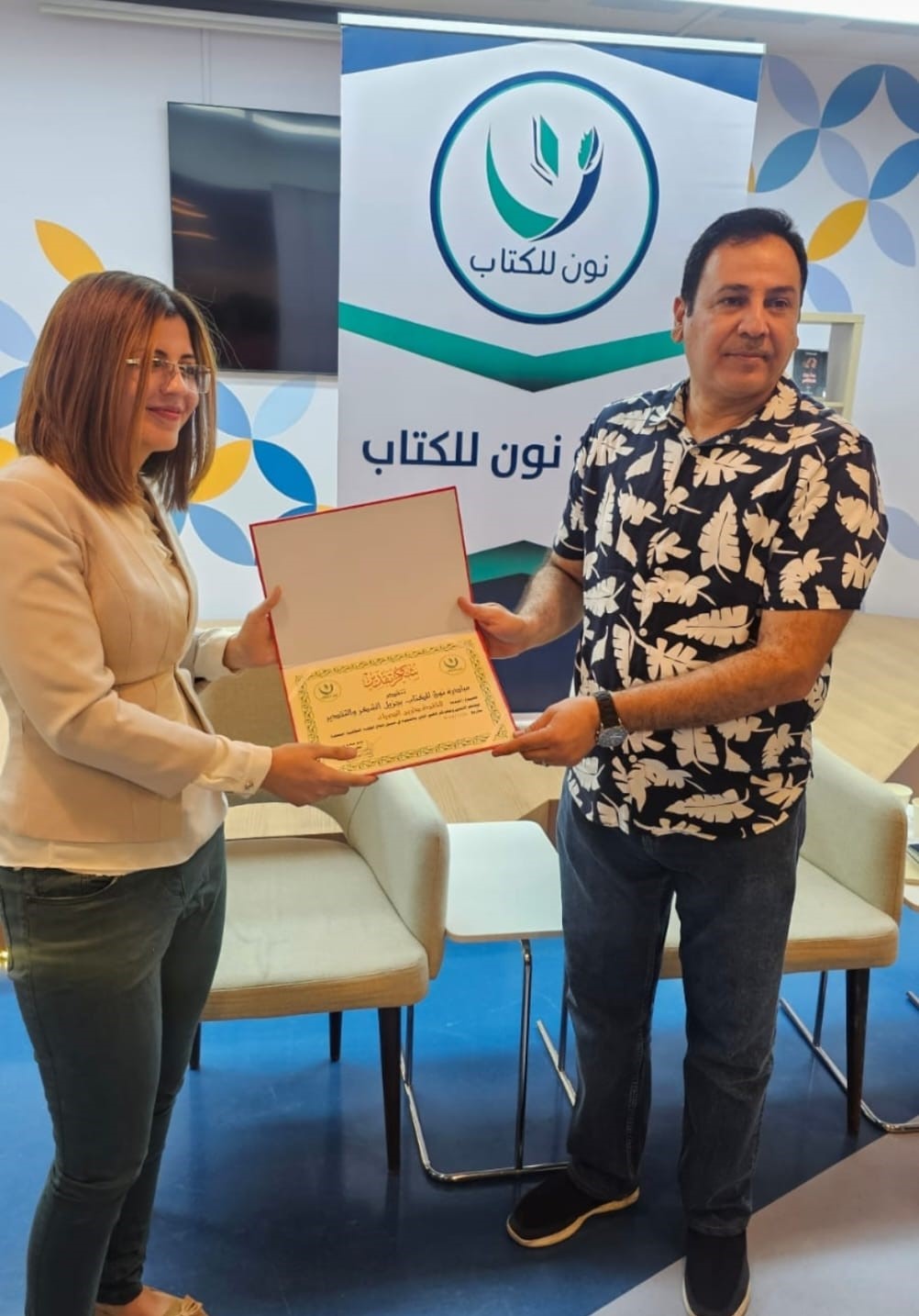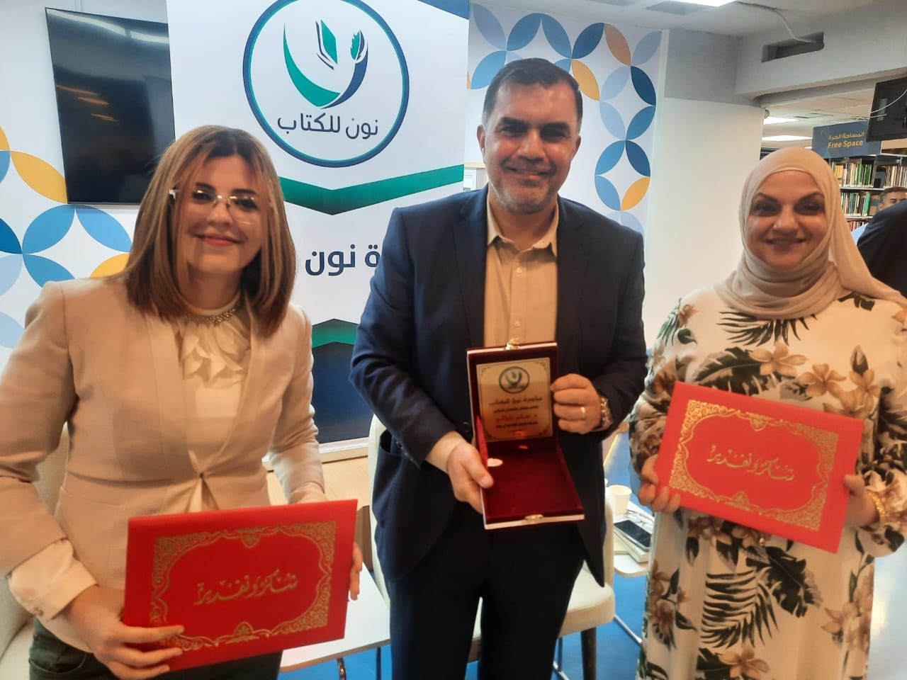 وفي ختام الجلسة، وجهت مبادرة نون للكتاب الشكر إلى مكتبة عبد الحميد شومان على استضافتها، وتم تكريم المشاركين والتقاط صورة جماعية.