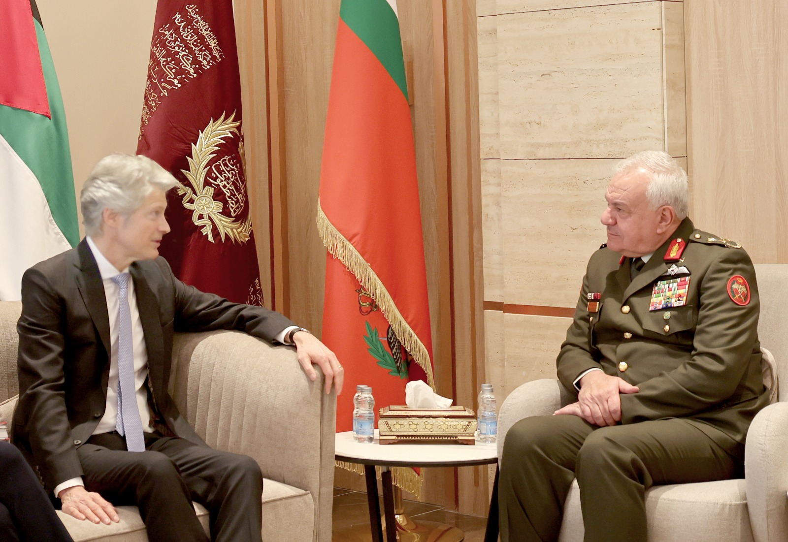 عمون - استقبل رئيس هيئة الأركان المشتركة اللواء الركن يوسف أحمد الحنيطي، في مكتبه بالقيادة العامة، اليوم الثلاثاء، المدير العام للسياسة الأمنية والدفاعية في وزارة الدفاع الألمانية "جاسبرويك"والوفد المرافق. |