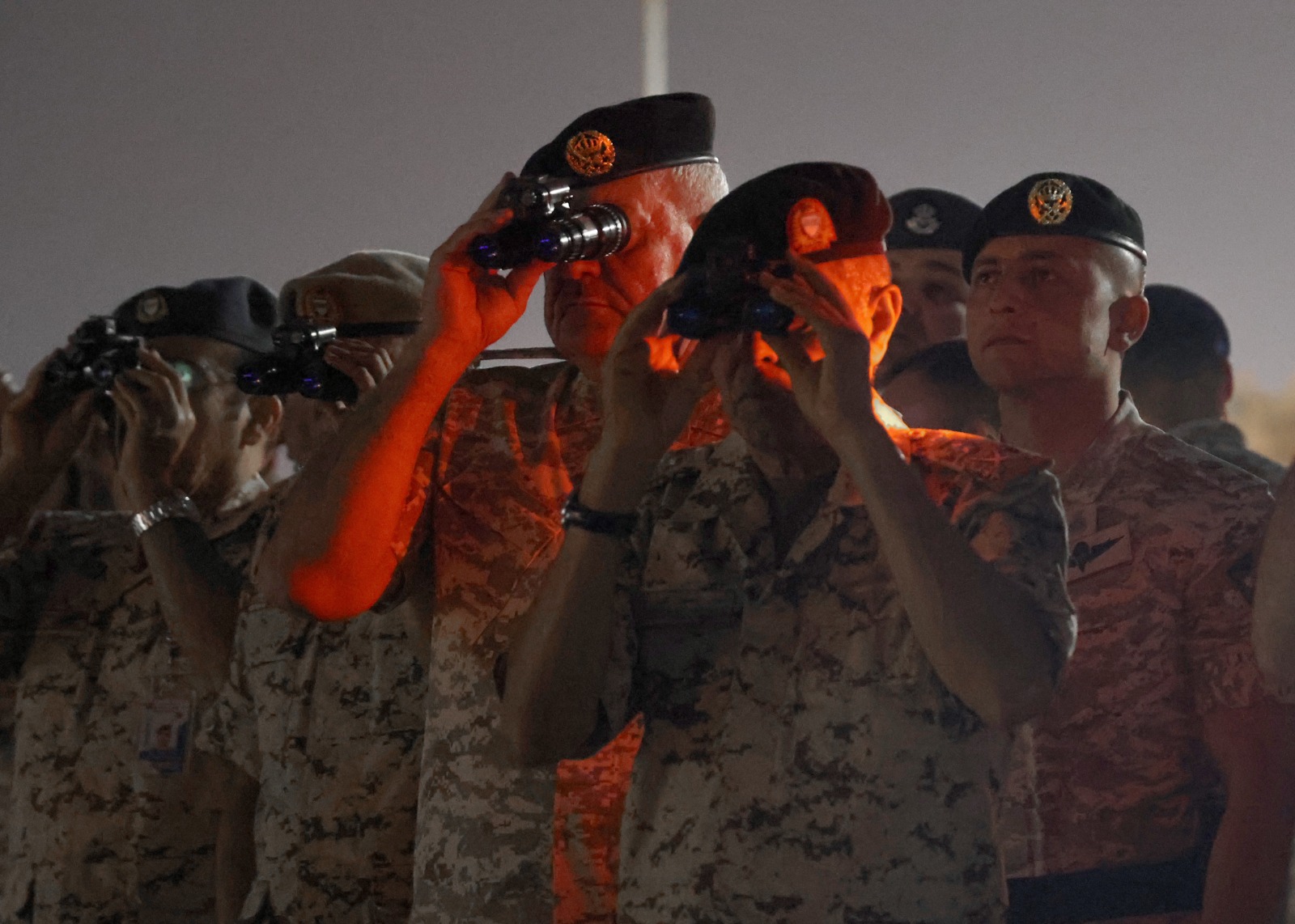 الحنيطي ونظيره البحريني يتابعان تمرين "صقور الهواشم/6" الليلي