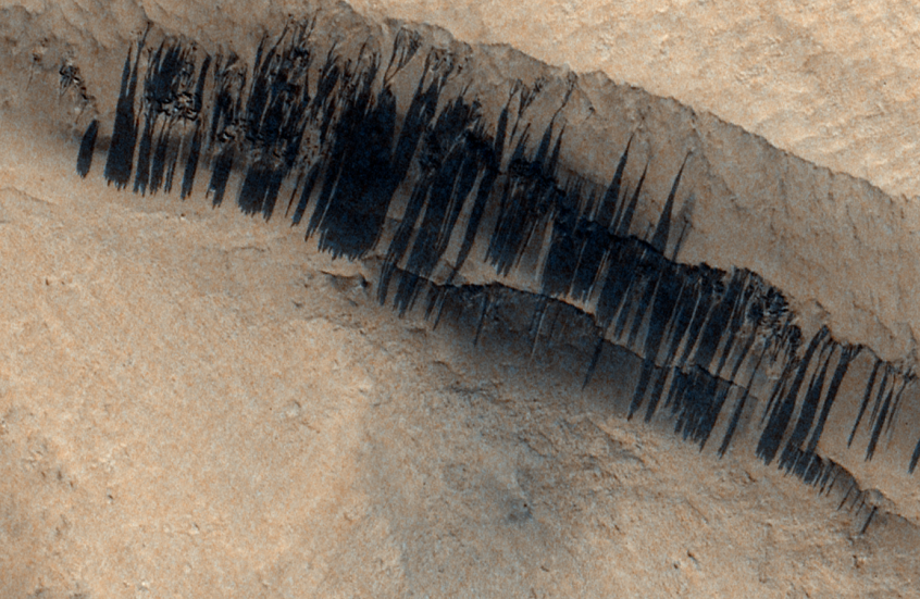 وتعرف هذه الظواهر باسم خطوط المنحدر المتكررة، وقد أثارت فضول الباحثين حول طبيعتها. يربط بعض العلماء ظهورها بوجود مياه مالحة متدفقة، بينما يعزو آخرون السبب إلى حركة الرمال الجافة التي تحركها الرياح وتقلبات درجات الحرارة. وقد دعمت الصور الجديدة الفرضية الثانية، حيث تُظهر كتلا غبارية تنزلق فعليا نحو الأسفل تاركة آثارا واضحة على المنحدرات.