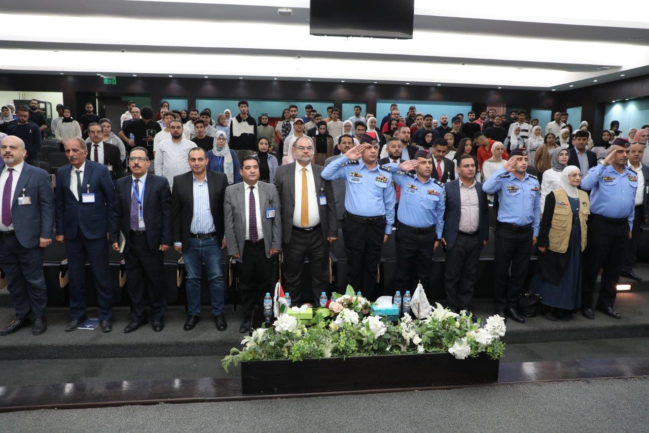 وتضمّن اليوم التوعوي مجموعة من المحاور الأمنية والتوعوية الهامة التي قدّمها نخبة من ضباط مديرية الأمن العام، ركّزت على قضايا تمسّ واقع الطلبة والمجتمع وتسهم في رفع مستوى الوعي والمسؤولية لديهم، حيث تناول الرائد قاسم ربيحات في المحور الأول تسجيل القيود الجرمية، موضحًا مفهومها وأنواعها وآلية التعامل معها، ومبيّنًا أثرها المباشر على مستقبل الأفراد وفرصهم العملية والاجتماعية، داعيًا الطلبة إلى الالتزام بالقوانين وتجنّب السلوكيات التي قد تؤثر سلبًا على مسيرتهم المهنية ، أما فيما يخصّ المحور الثاني حول السلم المجتمعي ومحاربة الفكر المتطرف والعنف الجامعي فتحدّث النقيب صدام العبادي عن أهمية تعزيز ثقافة الحوار والتسامح داخل الحرم الجامعي، مؤكدًا أن السلم المجتمعي هو ركيزة التماسك الوطني وأساس التقدّم، وأن العنف لا يبني المجتمعات بل يهدمها ، بدوره تناول النقيب زيد العبداللات في المحور الثالث الجرائم الإلكترونية، مسلطًا الضوء على أبرز صورها ومخاطر الاستخدام غير الآمن لمواقع التواصل الاجتماعي، مشددًا على أهمية الوعي الرقمي والمسؤولية الإلكترونية في ظل التطور التكنولوجي المتسارع ، واختُتمت المحاور بـالمحور الرابع الذي قدّمه الملازم خالد المحسيري حول آفة المخدرات، حيث وصفها بـ"الخطر الصامت الذي يسلب العقول ويدمّر الطاقات الشبابية"، موضحًا أساليب ترويجها الحديثة وطرق الوقاية منها، ومؤكدًا أن الوعي والمعرفة يشكّلان السلاح الأقوى لمواجهتها وحماية المجتمع من آثارها المدمّرة.