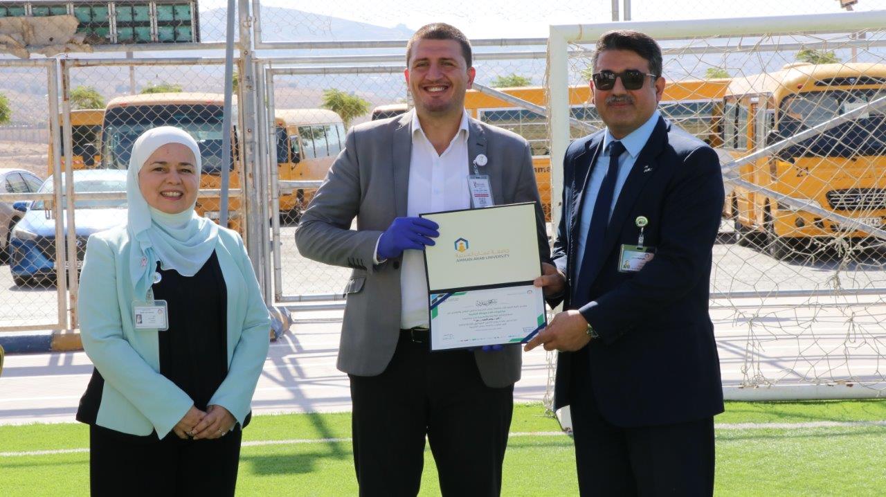 وفي ختام فعاليات اليوم الصحي كرّم الأستاذ الدكتور حسام الحمد مندوباً عن رئيس الجامعة المؤسسات والأفراد المشاركين تقديرًا لجهودهم ومساهمتهم في إنجاح هذا الحدث، الذي يجسد التزام الجامعة بنشر الوعي الصحي وتعزيز ثقافة العافية الشاملة داخل مجتمعها الجامعي.