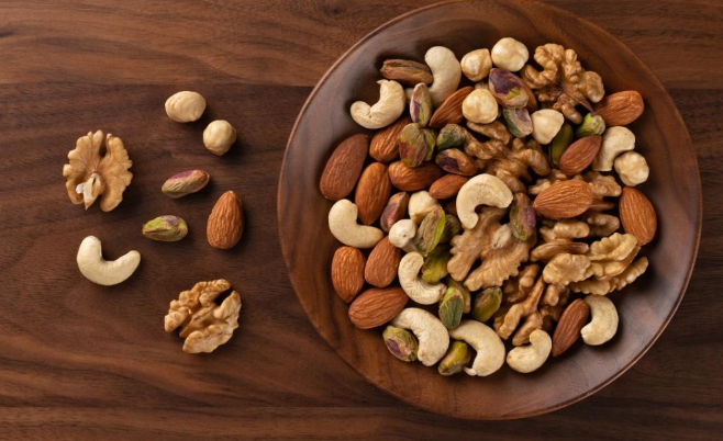 2. المكسرات الدهون الصحية: 14.4 جرام حجم الحصة: 1/4 كوب المكسرات مصدر رائع للدهون الصحية. تحتوي الحصة الواحدة على 17.5 جراماً من إجمالي الدهون، مُكوَّنة من: