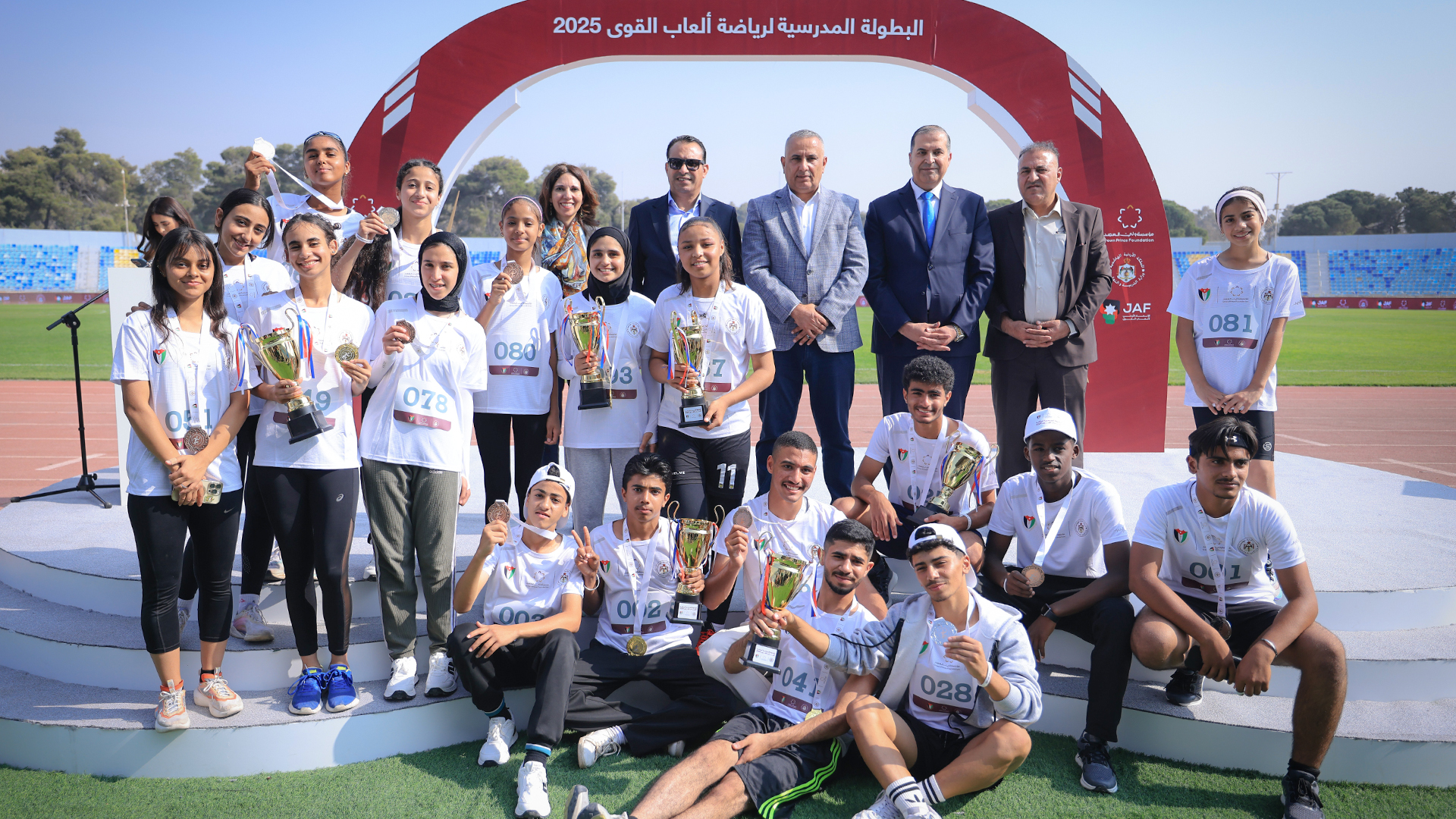 عمون - اختتمت مؤسسة ولي العهد، اليوم الأربعاء، الدورة الأولى من البطولة المدرسية لرياضة ألعاب القوى 2025، التي نظمتها بالشراكة مع وزارة التربية والتعليم والاتحاد الأردني لألعاب القوى، ضمن حفل أقيم تحت رعاية أمين عام وزارة التربية والتعليم للشؤون التعليمية الدكتور نواف العجارمة، مندوبًا عن وزير التربية والتعليم ووزير التعليم العالي والبحث العلمي الأستاذ الدكتور عزمي محافظة، وبحضور المدير التنفيذي لمؤسسة ولي العهد الدكتورة تمام منكو، ورئيس مجلس إدارة الاتحاد الأردني لألعاب القوى السيد رامي أبو عرابي العدوان، في إستاد عمّان الدولي.