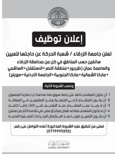مطلوب سائقين للعمل لدى جامعة الزرقاء