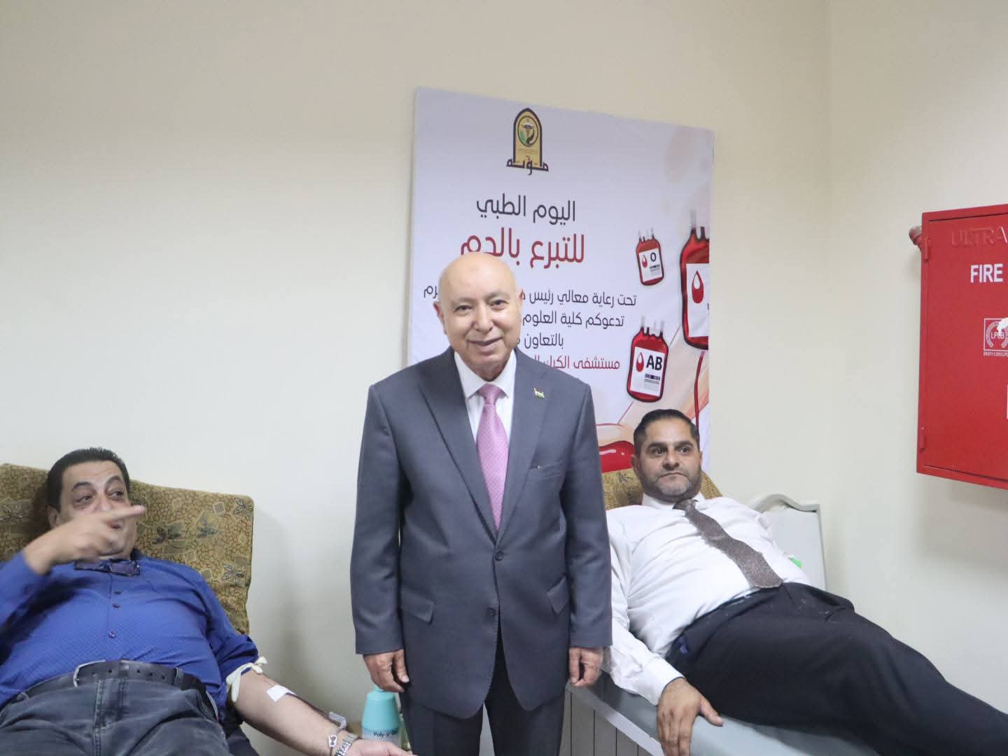 النعيمات يرعى حملة التبرع بالدم في كلية العلوم الطبية المساندة بجامعة مؤتة