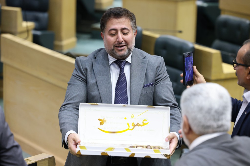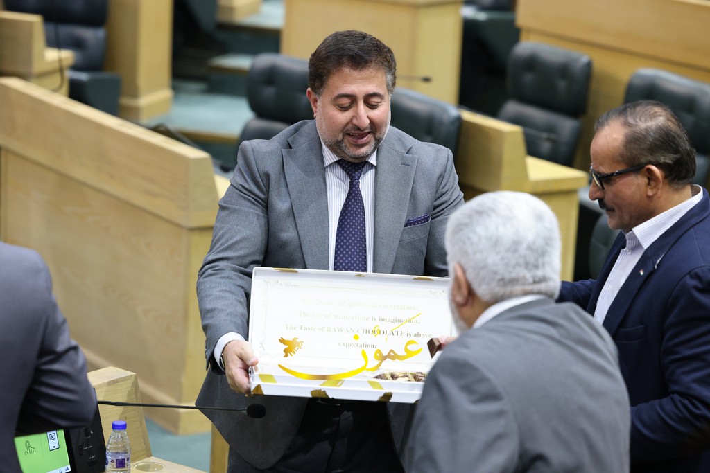 عمون - وزع النائب أحمد الرقب تحت قبّة البرلمان اليوم الاثنين، حلوى الشوكولاتة.