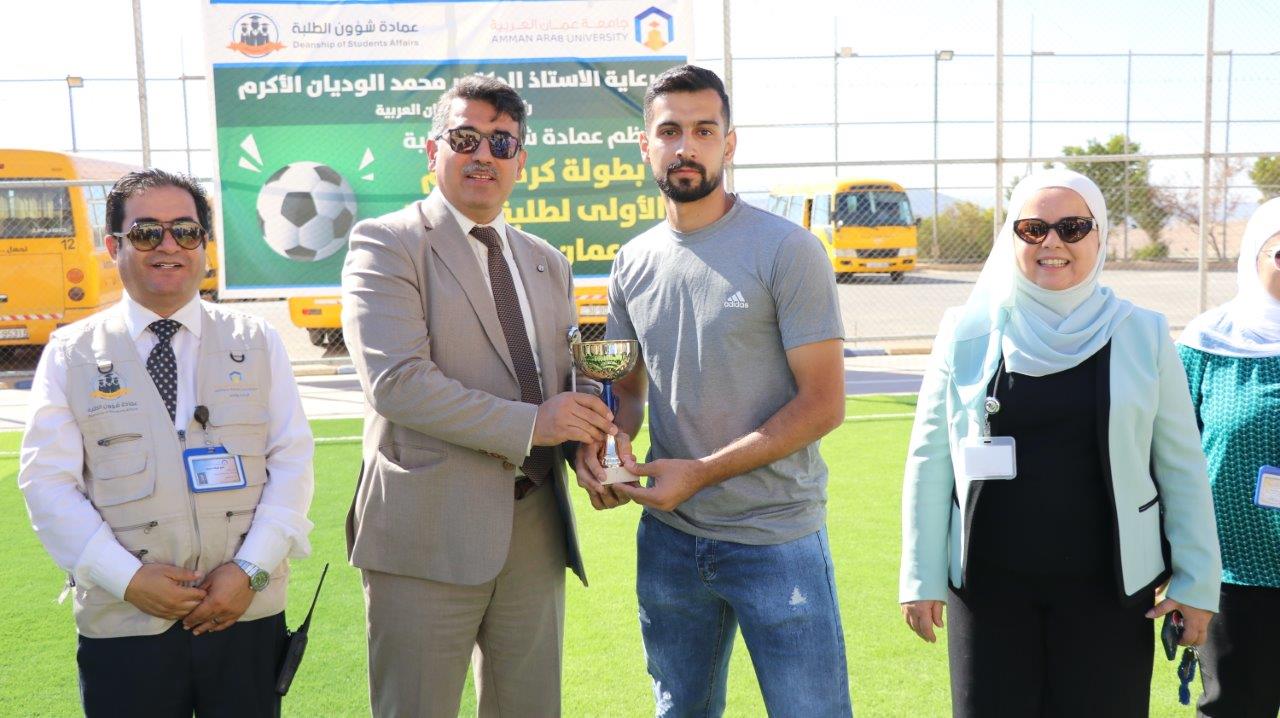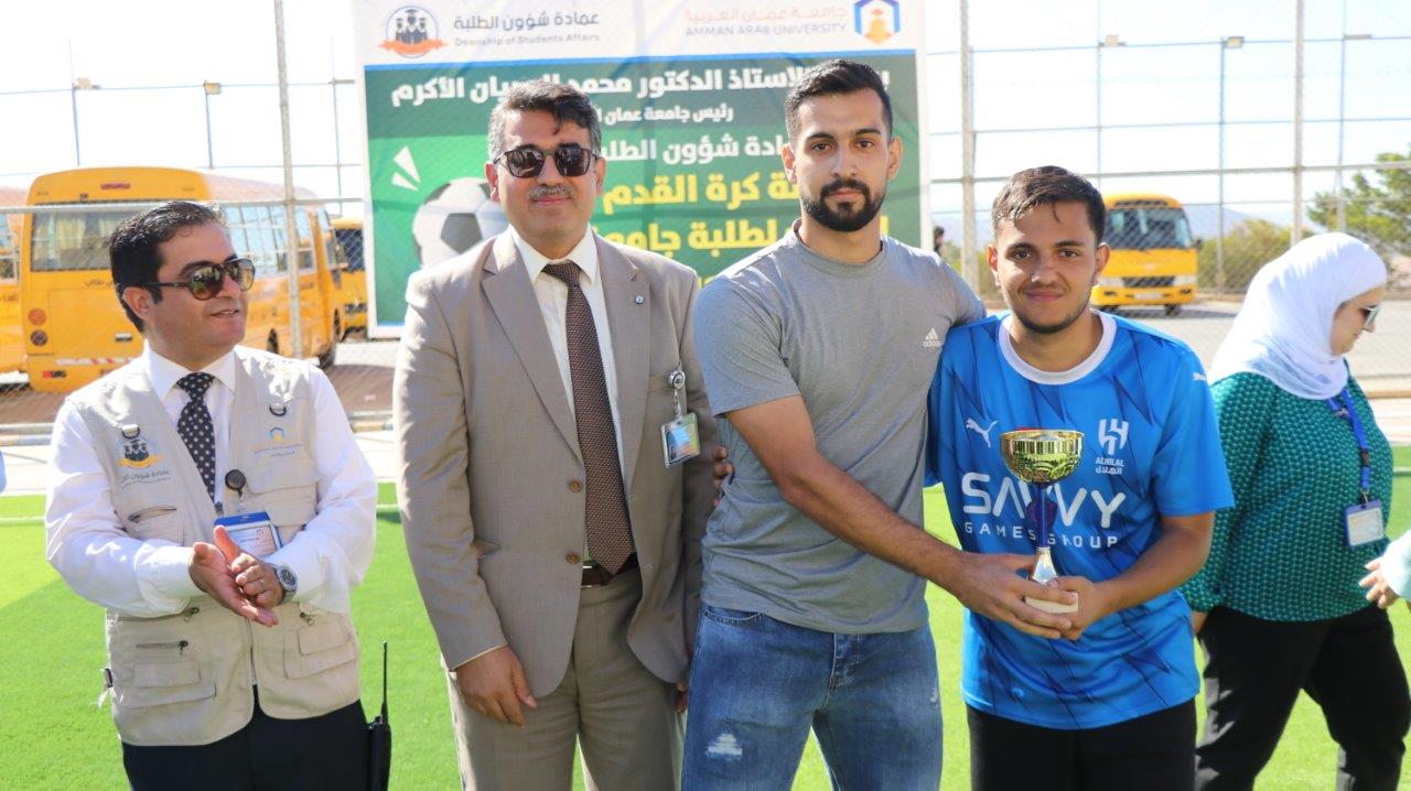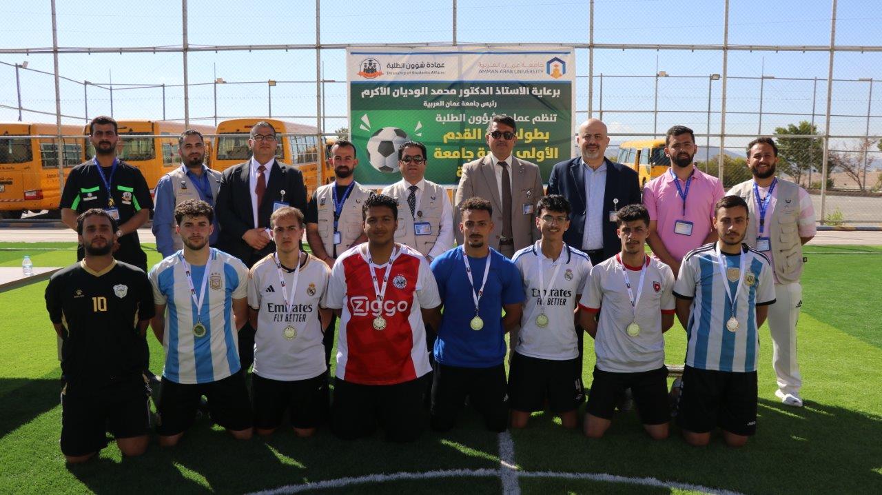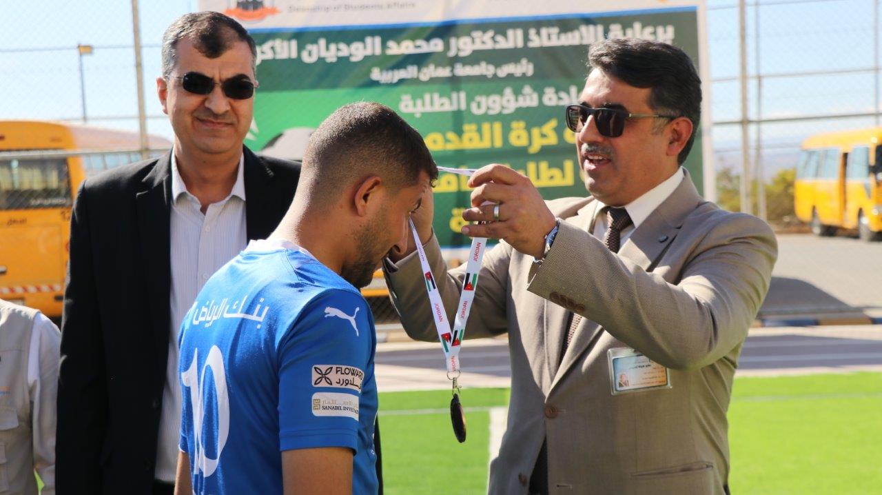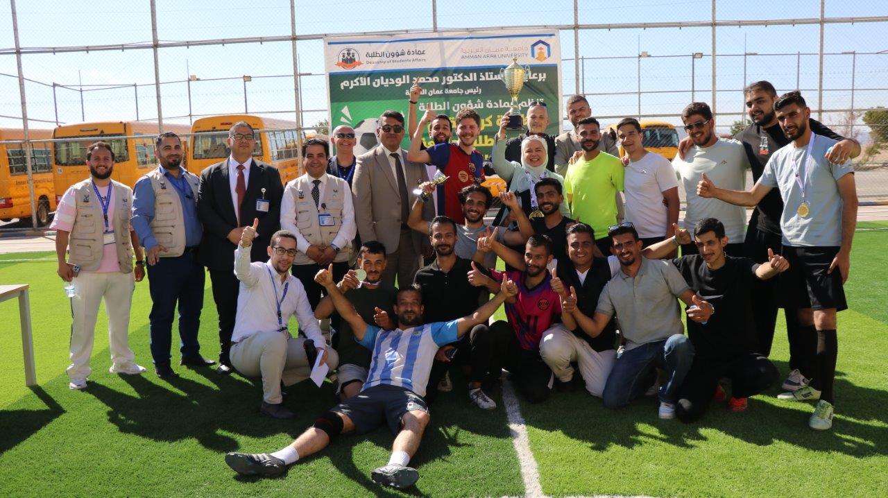 عمون - برعاية الأستاذ الدكتور محمد الوديان رئيس جامعة عمان العربية، نظّمت عمادة شؤون الطلبة / قسم الأنشطة الطلابية بطولة كرة القدم الأولى لطلبة الجامعة للعام الجامعي 2025/2026 على ملعب الجامعة، وسط أجواء تنافسية مميزة وروح رياضية عالية بين الفرق المشاركة، وبمشاركة ثماني من كليات الجامعة، وهي: كلية الصيدلة، وكلية الأعمال، وكلية تكنولوجيا المعلومات، وكلية الهندسة، وكلية علوم الطيران، وكلية الحقوق، وكلية الشريعة، وكلية الآداب والعلوم، حيث تميّزت المباريات بالحماس والتحدي بين الطلبة.