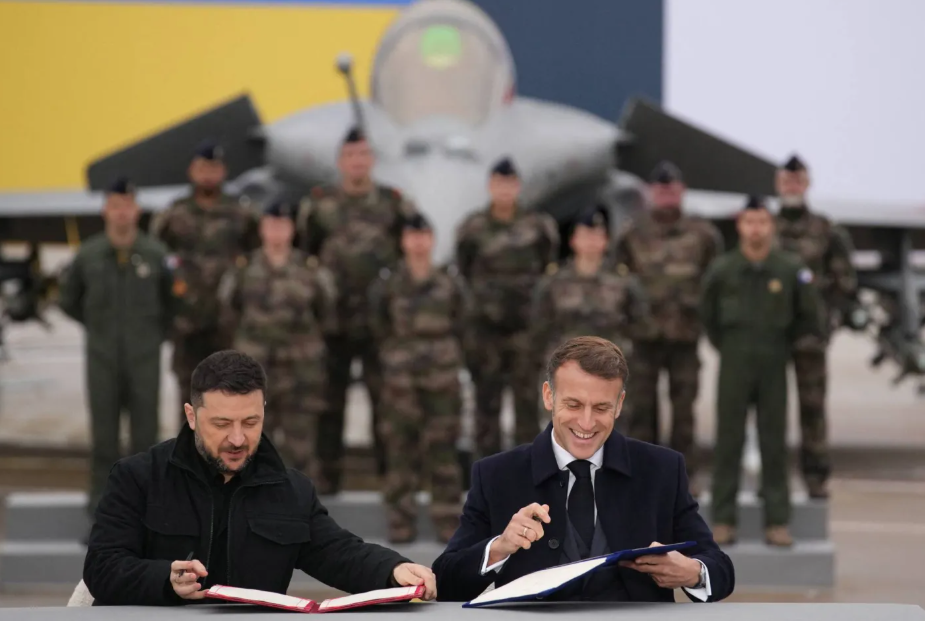 ماكرون وزيلينسكي يوقعان اتفاق تسليح لكييف