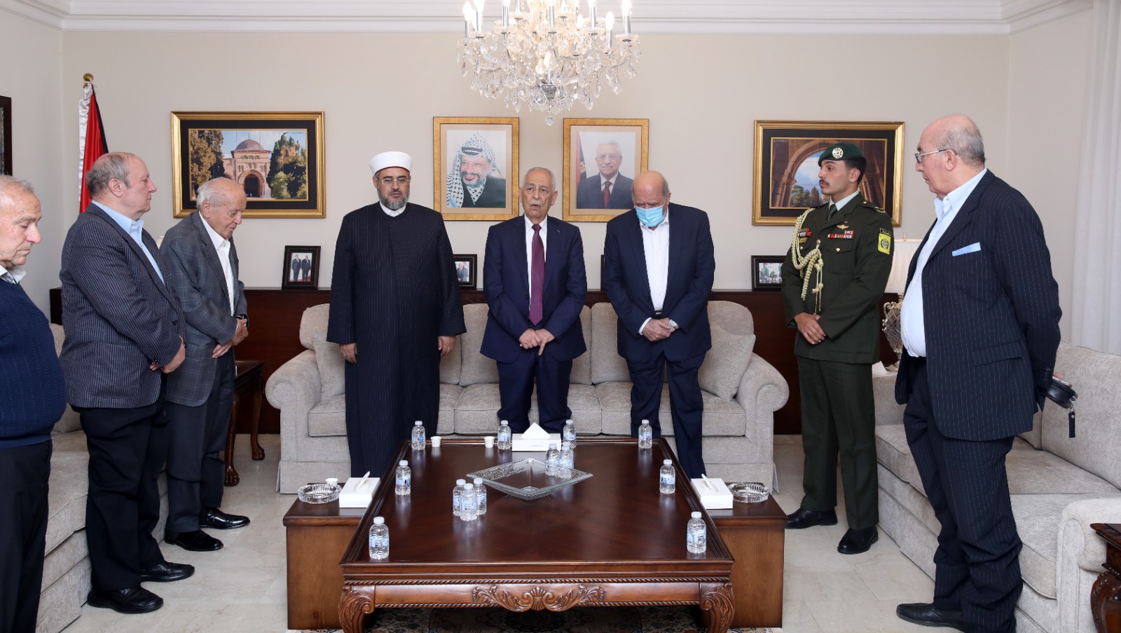 عمون - مندوبا عن جلالة الملك عبدالله الثاني، وسمو الأمير الحسين بن عبدالله الثاني، ولي العهد، قدم رئيس الديوان الملكي الهاشمي يوسف حسن العيسوي، الاثنين، واجب العزاء إلى سفير دولة فلسطين في الأردن عطا الله خيري، بوفاة شقيقته آمنه خيري. |