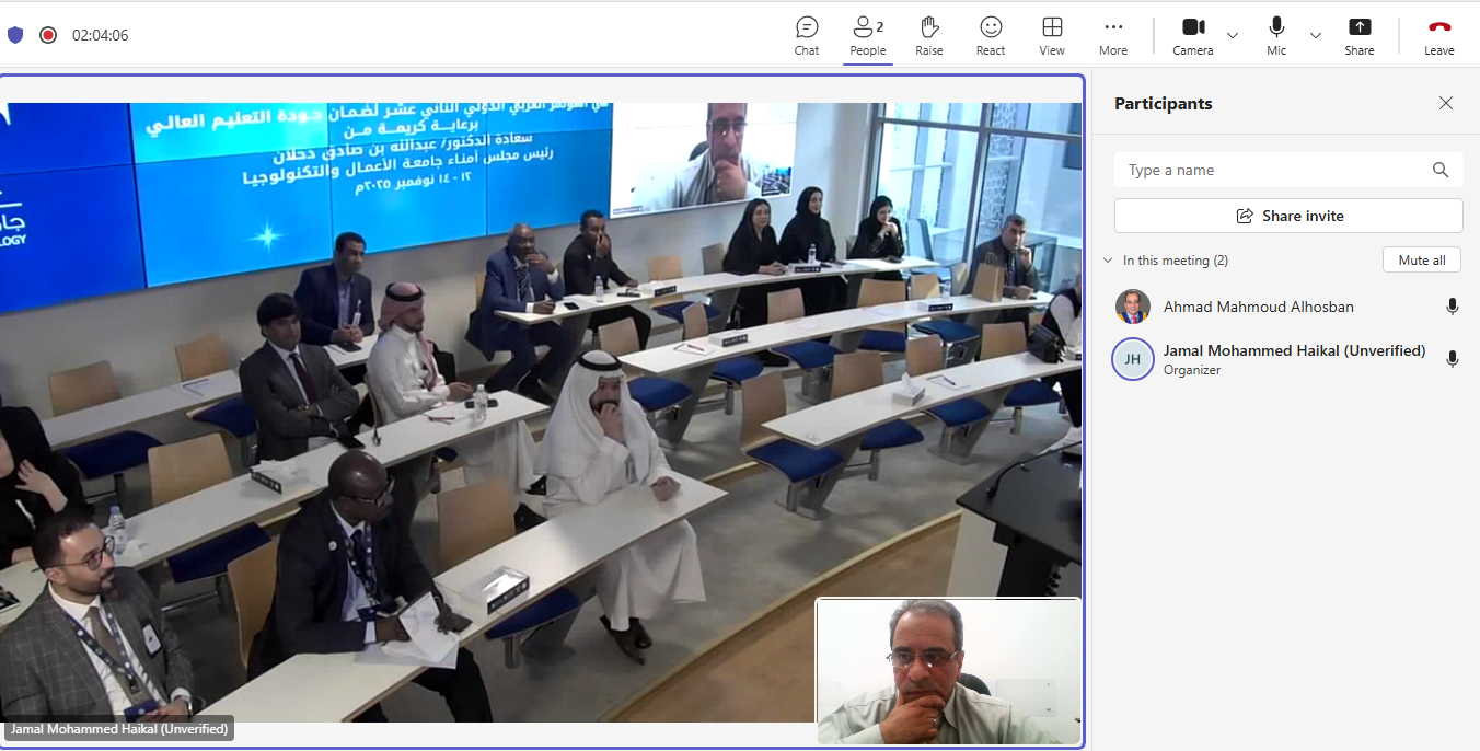 عمون - في إطار سعي كلية علوم الطيران في جامعة عمان العربية إلى تعزيز حضورها الأكاديمي والبحثي على المستويين المحلي والدولي، وتأكيداً على التزامها بالتميز الأكاديمي ومساهماتها البحثية، شارك الدكتور أحمد الحسبان رئيس قسم صيانة الطائرات في المؤتمر العربي الدولي الثاني عشر لضمان جودة التعليم العالي (IACQA 2025)، الذي عقد في جامعة الاعمال والتكنولوجيا في جدة / المملكة العربية السعودية.