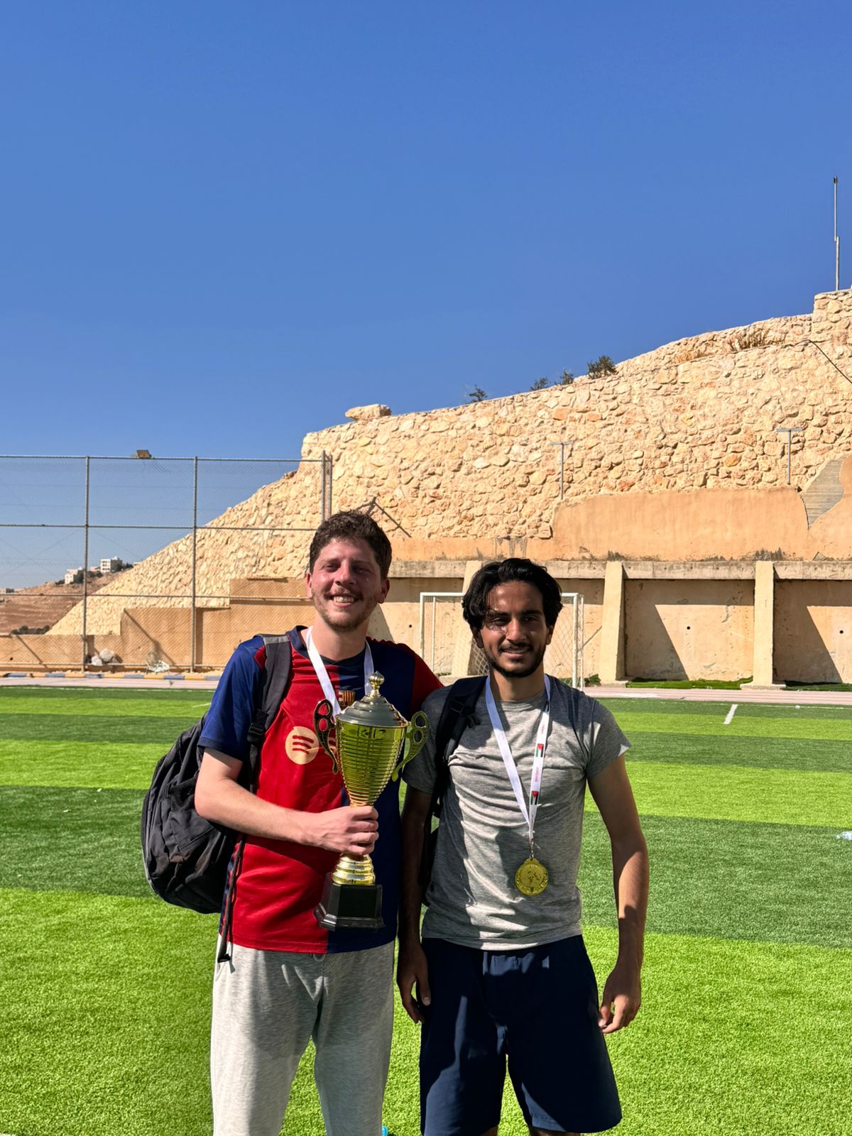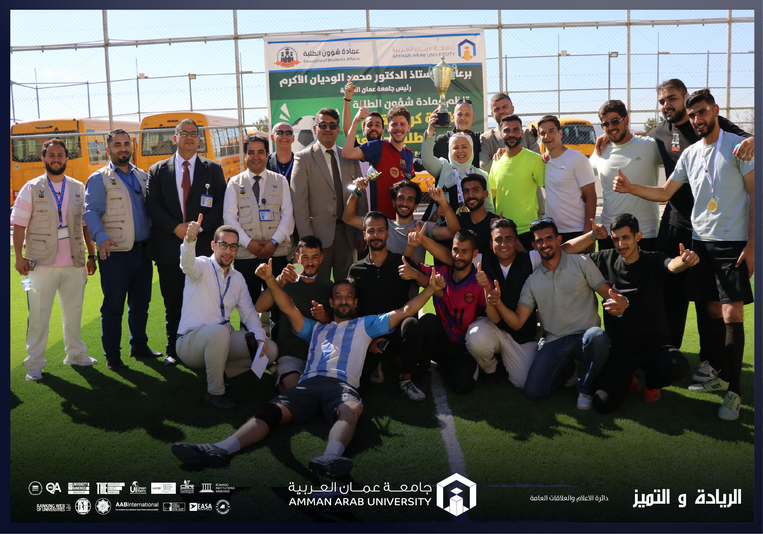 وفي ختام مشوارٍ حافل بالمنافسة والإصرار تمكن فريق كلية الصيدلة في المباراة النهائية من تحقيق فوزٍ مثيرٍ بركلات الترجيح على فريق كلية تكنولوجيا المعلومات بعد تعادلٍ مشوّقٍ في الوقت الأصلي، ليحسم اللقب لصالحه وسط أجواءٍ مفعمةٍ بالحماس والتعاون والروح الرياضية الرفيعة، ومندوباً عن الأستاذ الدكتور محمد الوديان رئيس جامعة عمان العربية سلم الأستاذ الدكتور حسام الحمد نائب رئيس الجامعة لتخطيط وضمان الجودة